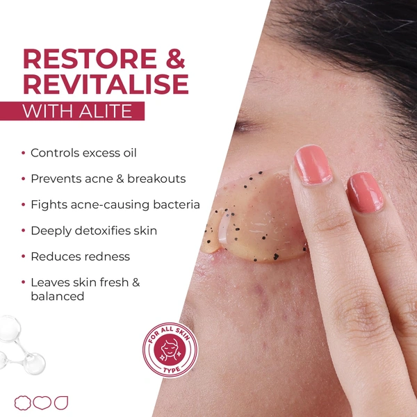 Alite Anti-Acne Face Wash is enriched with encapsulated charcoal that deeply cleanses pores, removes excess oil, and helps fight acne-causing bacteria. It detoxifies the skin by drawing out dirt, impurities, and pollution. Suitable for oily to normal skin, this gentle yet effective unisex face wash supports clearer, fresher, and healthier-looking skin with regular daily use.