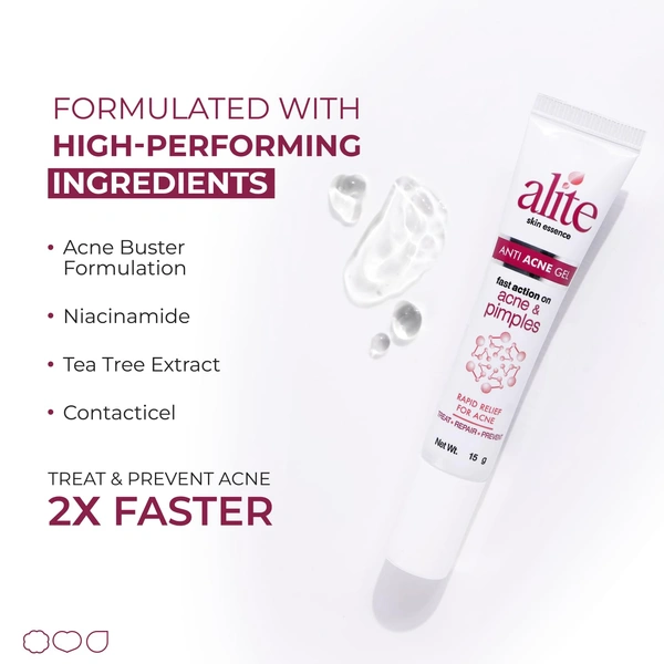 Alite Anti-Acne Spot Corrector Gel helps target active acne, pimples, and acne marks effectively. Its fast-absorbing gel formula penetrates deep into pores to reduce excess oil, calm redness, and support clearer skin. Regular use helps minimize acne scars while preventing new breakouts. Lightweight and non-greasy, this gel is suitable for day and night use for both men and women.