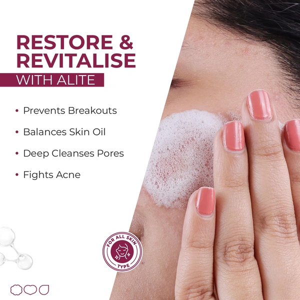 Alite Foaming Face Wash with 1% Salicylic Acid deeply cleanses skin to fight active acne and unclog pores. Its gentle foaming formula removes excess oil, dirt, and impurities while helping prevent breakouts. Regular use promotes clearer, brighter-looking skin without over-drying. Suitable for men and women, this face wash is ideal for acne-prone skin needing effective daily cleansing.