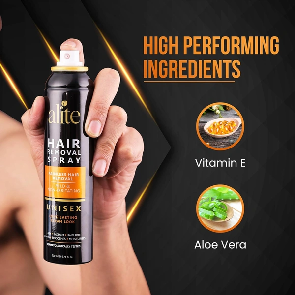 Alite Hair Removal Spray 200ml for Men & Women | Painless & Irritation-Free Body Hair Removal | For Chest, Arms, Underarms, Bikini Line & Legs