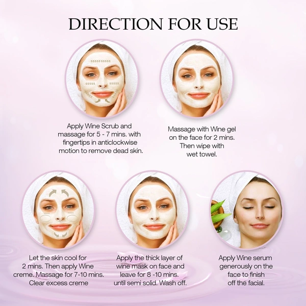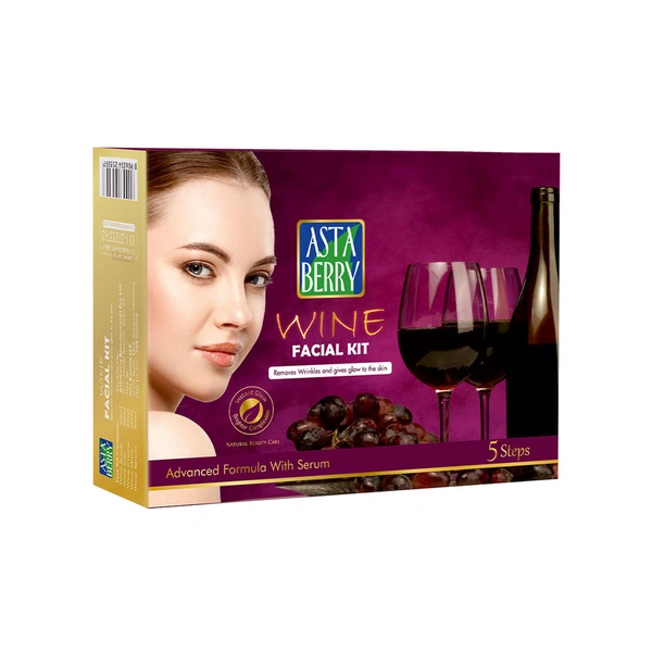 Asta Berry Wine Facial Kit 270ml is an antioxidant-rich skincare treatment designed to rejuvenate your skin. Infused with grape extract, almond oil, and shea butter, it helps reduce visible signs of aging while nourishing and hydrating the skin. The kit's 5-step process includes cleansing, exfoliating, massaging, masking, and serum application, leaving your skin bright, smooth, and glowing. It promotes skin elasticity, improves tone, and provides deep hydration, giving you a youthful and radiant complexion. Ideal for all skin types, this facial kit offers salon-like results at home.