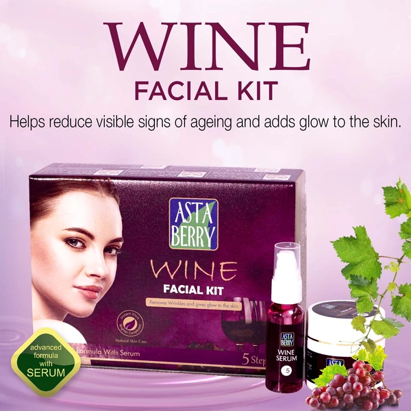 Asta Berry Wine Facial Kit 270ml | Antioxidant-Rich Formula with Grape Extract | Almond Oil & Shea Butter to Reduce Signs of Aging | Nourish & Brighten Skin