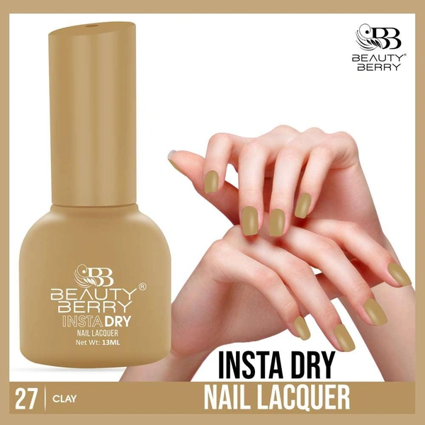 Beauty Berry Insta Dry Nail Lacquer Clay 27 - 13ml | Quick-Dry & Long-Lasting | High Shine & Smooth Application | Earthy Clay Shade for Sophisticated Nails