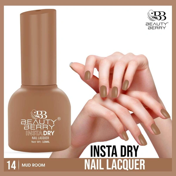 Beauty Berry Insta Dry Nail Lacquer Mud Room 14 - 13ml | Quick-Dry & Long-Lasting | High Shine & Smooth Application | Elegant Taupe Shade for Sophisticated Nails?