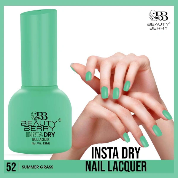 Beauty Berry Insta Dry Nail Lacquer Summer Grass 52 - 13ml | Quick-Dry & Long-Lasting | High Shine & Smooth Application | Fresh Green Shade for Elegant Nails