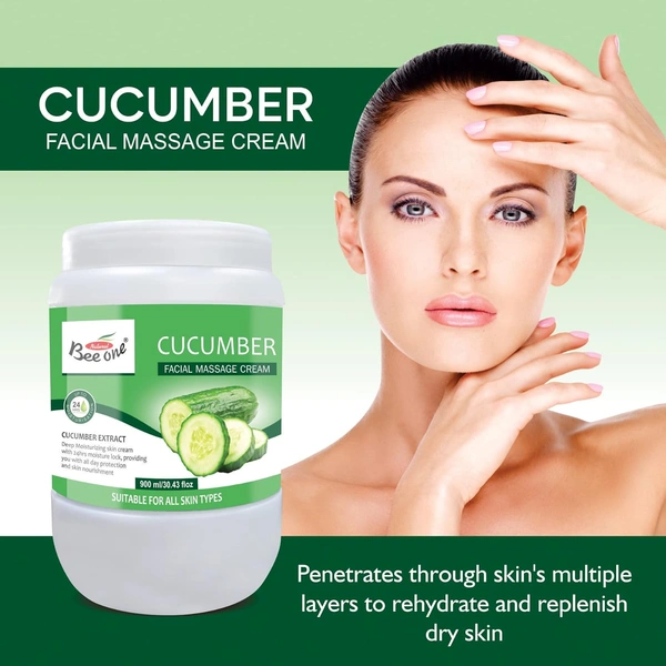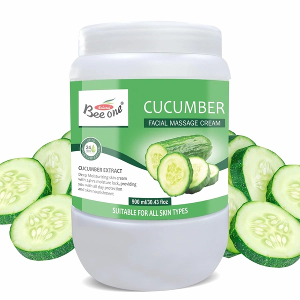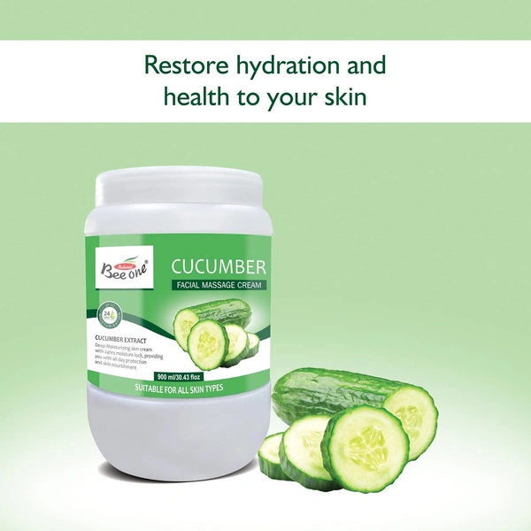Bee One Cucumber Facial Massage Cream 900ml | Enriched with Cucumber Extracts for Deep Moisturizing & 24H Hydration | Soothes, Nourishes & Refreshes Skin | Paraben-Free & Vegan