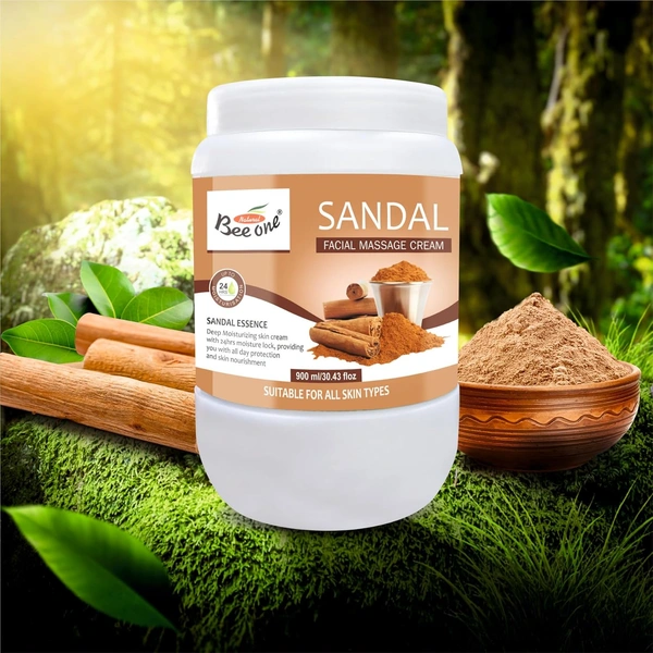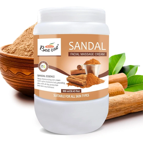 Bee One Sandal Facial Massage Cream 900ml | Enriched with Sandal Extracts for Deep Moisturizing, Soothing & 24H Hydration | Softens, Nourishes & Rejuvenates Skin | Paraben-Free & Vegan