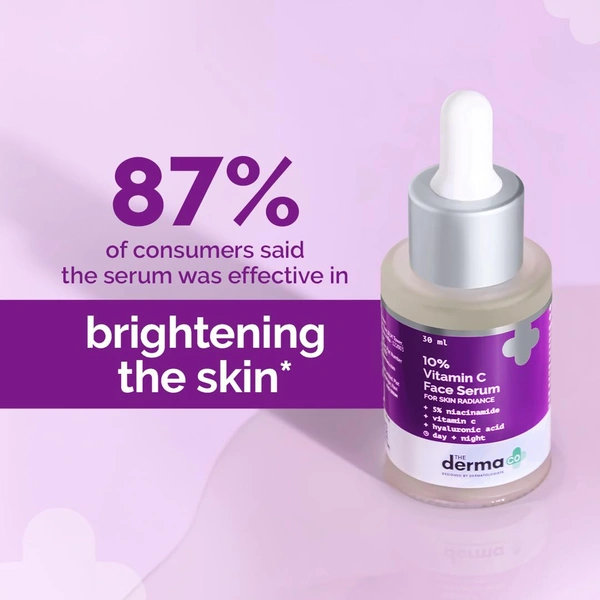 The Derma Co 10% Vitamin C Face Serum 30ml I With Vitamin C, 5% Niacinamide & Hyaluronic Acid I Boosts Radiance & Hydrates | Day + Night Regimen | Brightens Skin | Reduces Dark Spots | Lightweight Formula | Suitable For All Skin Types
