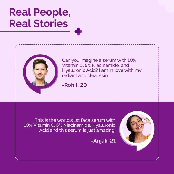 The Derma Co 10% Vitamin C Face Serum with Vitamin C, 5% Niacinamide & Hyaluronic Acid (30ml) is a powerful antioxidant-rich serum designed to brighten the skin, reduce dark spots, and promote an even skin tone. The 10% Vitamin C helps neutralize free radicals, boosts collagen production, and enhances skin radiance, while 5% Niacinamide works to control sebum, reduce acne marks, and refine pores. Hyaluronic Acid deeply hydrates the skin, locking in moisture for a plump, healthy look. This lightweight, non-greasy serum absorbs quickly, making it perfect for daily use. Dermatologically tested and toxin-free, it is suitable for all skin types, promoting a clearer, smoother, and more radiant complexion.