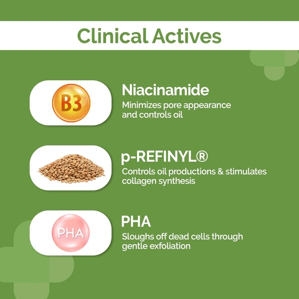 The Derma Co Pore Minimizing Daily Face Moisturizer is specially formulated for oily and acne-prone skin. With a potent blend of 3% Niacinamide, 3% PHA, and P-Refinyl�, this moisturizer helps minimize the appearance of pores, reduce excess oil, and refine skin texture. Niacinamide works to brighten the skin and control sebum production, while PHA (Polyhydroxy Acid) gently exfoliates, revealing smoother skin. The inclusion of P-Refinyl� aids in improving skin elasticity and enhancing radiance. It provides long-lasting hydration, leaving the skin feeling balanced and refreshed without clogging pores.
