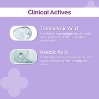 The Derma Co Tran-Zelaic Pigmentation Corrector Serum with 3% Tranexamic Acid & 10% Azelaic Acid (30ml) is a potent serum designed to target pigmentation, dark spots, and uneven skin tone. Tranexamic Acid helps reduce melanin production, effectively lightening dark spots, while Azelaic Acid works to exfoliate the skin, unclog pores, and reduce the appearance of acne marks. This lightweight, fast-absorbing serum not only brightens the skin but also evens out complexion, providing a smoother and more radiant appearance. With regular use, it helps achieve clearer, more even-toned skin while minimizing pigmentation and redness. Ideal for those with sensitive or acne-prone skin, this dermatologist-tested formula is free from harmful chemicals and is suitable for daily use as part of your skincare routine.