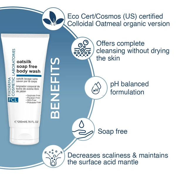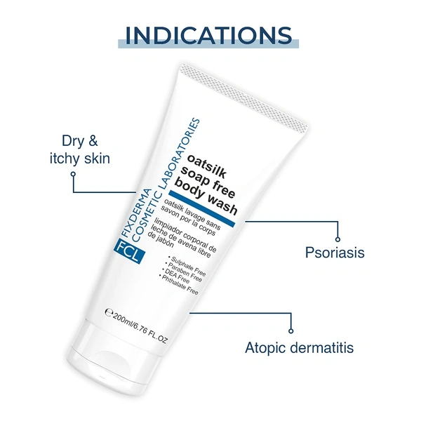 Fixderma Cosmetic Laboratories Oatsilk Soap Free Body Wash 200ml for Dry & Rough Skin | Relieves Itchy Skin | Nourishes & Hydrates | Suitable for Sensitive Skin