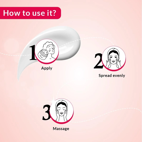 Apply on clean face Use day & night Massage till absorbed Use sunscreen daytime