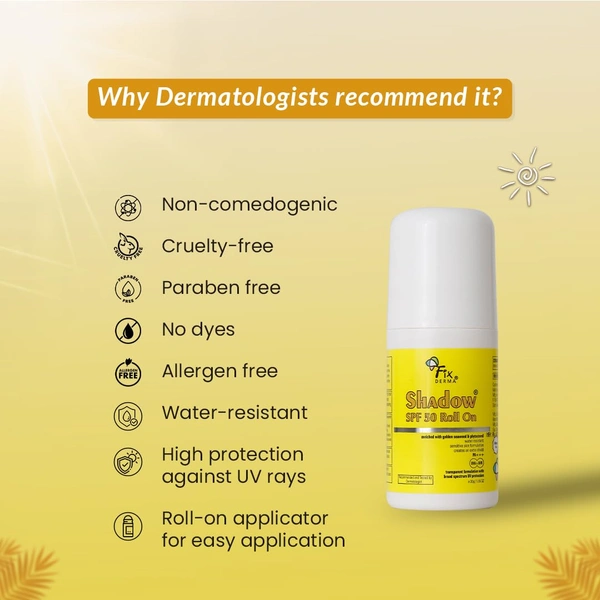 Fixderma Shadow Sunscreen SPF 50 Roll On 30gm PA+++ | Transparent Lightweight Sunscreen | Broad Spectrum UVA & UVB Protection | Water Resistant | Safe for Sensitive Skin