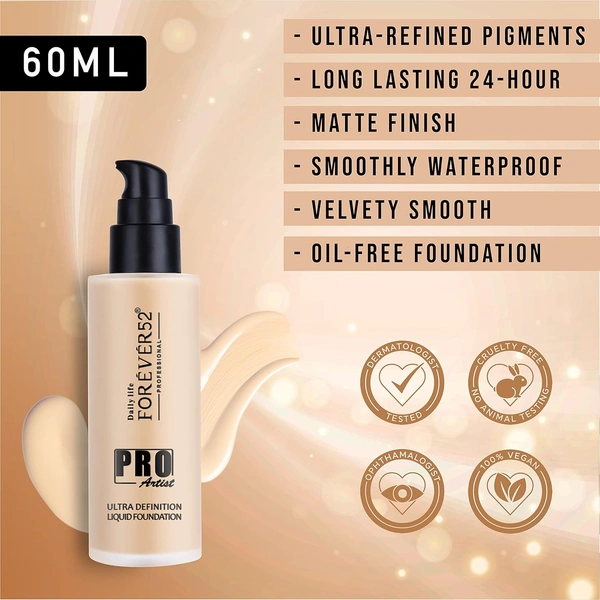 Forever 52 Daily Life Pro Artist Ultra Definition Liquid Foundation , 60ml | Lightweight | Long-Lasting Coverage | Fair to Mediium Skin Tone | Waterproof |Matte Finish | French Toast-04