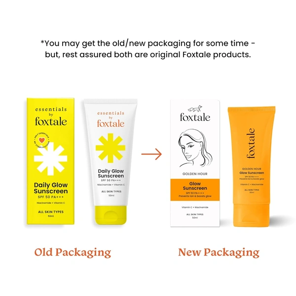 Foxtale Glow Sunscreen with Vitamin C & Niacinamide � 50ml | SPF 50 Pa++++ | Prevents Tanning & Boost Glow | UVA And UVB Filters | Lightweight & Non-Greasy | Brighten Skin | All Skin Types