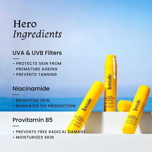 Foxtale Niacinamide Dewy Sunscreen - 50ml | SPF 70 Pa++++ | Prevent Tanning | No White Cast | Non-Sticky | Reduce Spots & Pigmentation | Broad-Spectrum Sunscreen | for Normal To Dry Skin