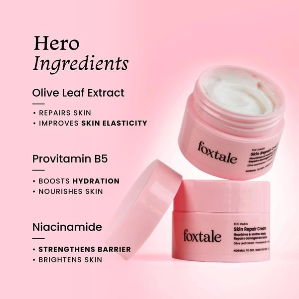 Foxtale Skin Repair Cream - 50g | Olive Leaf Extract, Provitamin B5 and Niacinamide | Nourishes & Soothes Deeply | Repair Damages Skin Barrier | For Glowing Skin | Normal To Dry, Sensitive Skin