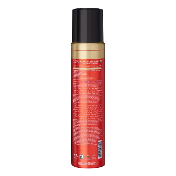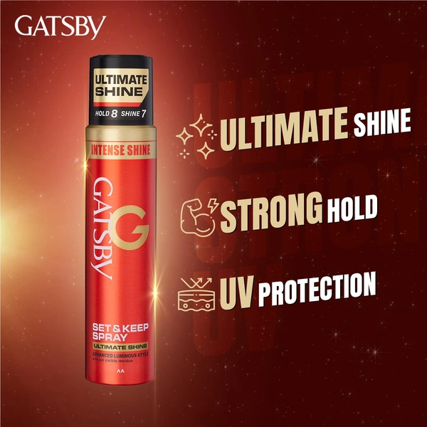 Gatsby Set & Keep Hair Spray Ultimate Shine, 250ml | Maximum Hold & Luminous Finish | UV Protection & Non-Sticky | Residue-Free Styling | Long-Lasting & Dermatologically Tested | Compact Size