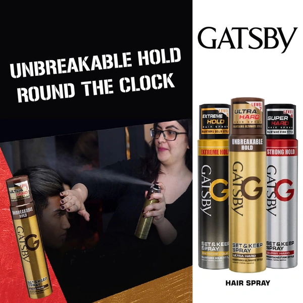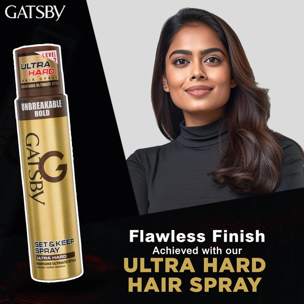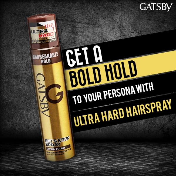 Gatsby Set & Keep Ultra Hard Hair Spray 250ml | Strong Hold, Non-Sticky Finish, and Long-Lasting Control for Any Look
