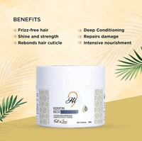 The Hi9 Keratin Rich Hair Mask | 200g is a luxurious treatment designed to restore and strengthen your hair with the power of keratin. This deeply nourishing mask penetrates the hair shaft, repairing damage and reducing breakage while providing intense hydration. Formulated with a blend of enriching ingredients, it revitalizes and smooths the hair, enhancing its natural shine and softness. Ideal for dry, damaged, or chemically-treated hair, this mask helps to improve hair elasticity, reduce frizz, and enhance manageability. Use it regularly to achieve healthier, more resilient hair that looks and feels revitalized.