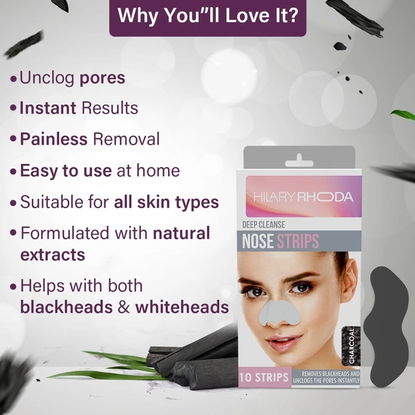 Hilary Rhoda Deep Cleanse Nose Strips (10 Strips) | Activated Charcoal Formula | Effectively Removes Blackheads, Dirt & Oil | For Clean, Smooth & Refined Skin
