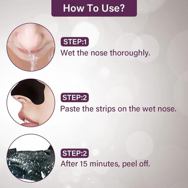 Clean and Wet Your Face - Wash your face thoroughly with warm water and a gentle cleanser to remove excess oil and dirt. Prepare the Nose Strip - Open the packet and peel the strip from the backing. Apply the Strip - Place the moist strip directly on your damp nose, pressing it down gently to ensure it sticks properly. Leave It On - Allow the strip to dry for about 10-15 minutes, or until it feels firm to the touch. Remove the Strip - Slowly peel the strip off starting from the edges, pulling towards the center. Rinse Your Face - Wash your face with cool water to close the pores. Follow up with a moisturizer to soothe the skin. Repeat as Needed - For best results, use 1-2 times a week or as needed.Reviews and Ratings