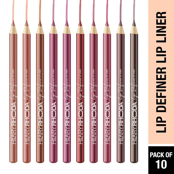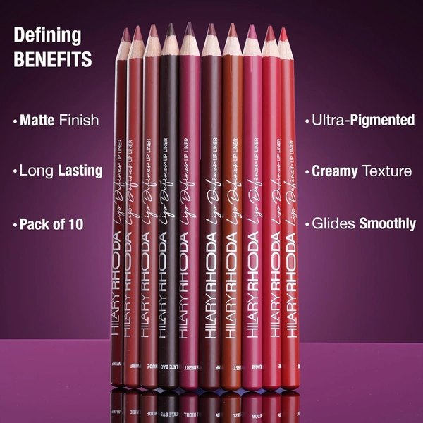 Hilary Rhoda Lip Definer Lip Liner Set of 10 1.2g Each | Smooth One Swipe Application | Long-Lasting & Smudge-Proof Formula | Matte Finish Multicolor Lip Pencil Set