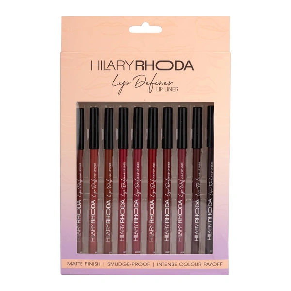 Define your lips perfectly with Hilary Rhoda Lip Definer Lip Liner Set. This set of 10 vibrant shades delivers smooth, precise application in just one swipe. The long-lasting, smudge-proof formula keeps your lip look intact for hours. With a soft matte finish, these pencils enhance lipstick wear and prevent feathering. Lightweight and easy to use, this multicolor set is ideal for daily makeup, professional use, and all occasions.