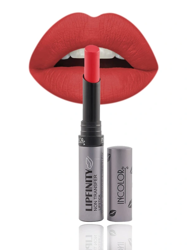 Incolor Lipfinity Non-Transfer Lipstick in Shade 14 delivers a bold, matte finish with high pigmentation. Its lightweight, waterproof, and smudge-proof formula ensures all-day comfort and vibrant color without touch-ups. Perfect for any occasion, this lipstick offers long-lasting wear without drying lips. Enriched with skin-friendly ingredients, it glides smoothly for a flawless, even application. A must-have for beauty lovers