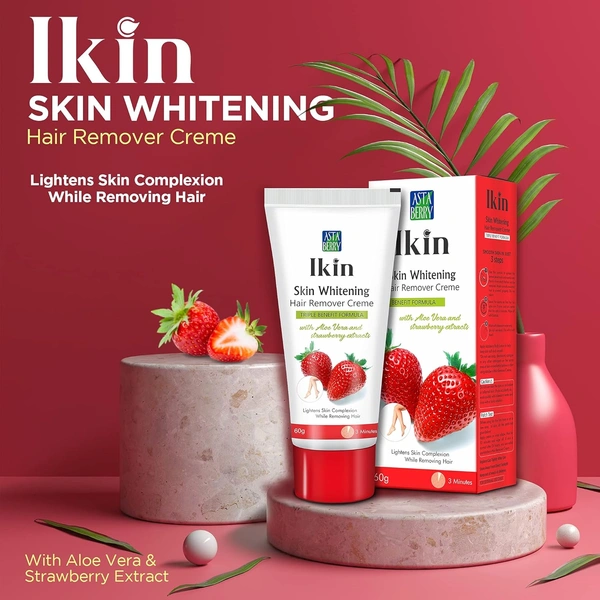 Ikin Skin Brightening Hair Remover Cream is specially designed for women and girls, offering a gentle and effective solution for unwanted hair removal. Suitable for all skin types, this cream ensures smooth, soft, and radiant skin while brightening the skin tone. Perfect for sensitive areas like the bikini line, it works quickly and leaves a refreshing fragrance. The pack contains 2 tubes of 60gm each for long-lasting use.