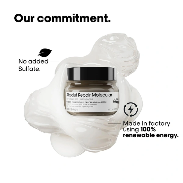 Loreal Professionnel Absolut Repair Molecular Rinse-Off Cream Mask 250ml | Deep Repair Mask For Very Damaged Hair | With 2% Peptides Bonder & 5 Amino Acids