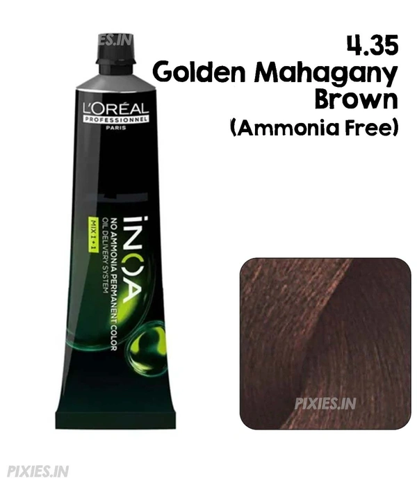 Experience rich, luxurious color with L'Oreal Professionnel INOA 4.35 Golden Mahogany Brown. This ammonia-free permanent hair color combines golden and mahogany tones for a radiant, multidimensional finish. Powered by ODS� oil delivery technology, it nourishes while coloring, providing 100% grey coverage and a long-lasting shine. Ideal for all hair types, it ensures a smooth, soft texture and salon-quality results with minimal scalp irritation.