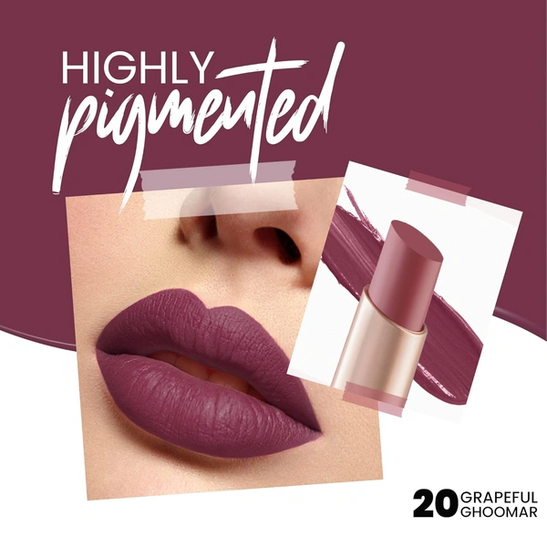 MARS Creamy Matte Long-Lasting Lipstick for Women 3.2g (Shade 20-Grapeful Ghoomar)| Smooth & Lightweight | Single Swipe Application