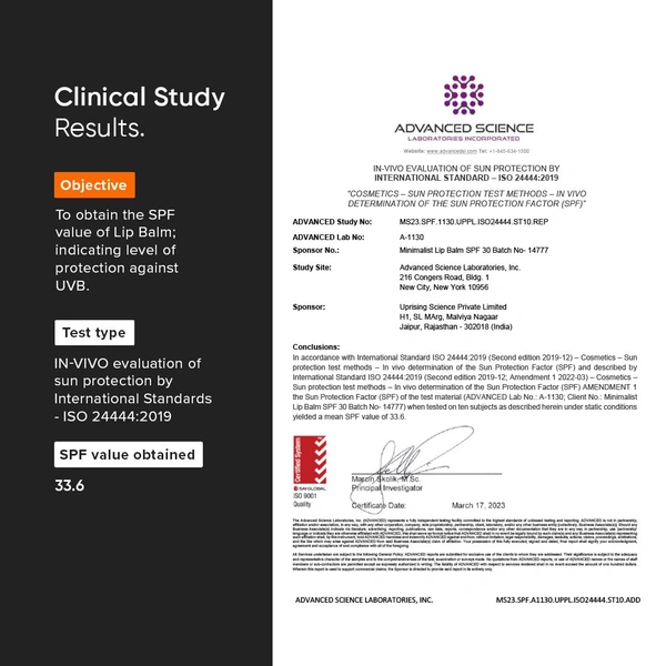 Minimalist SPF 30 Lip Balm (8g) protects and nourishes lips with ceramides and hyaluronic acid. It offers broad-spectrum SPF 30 defense against UV damage while keeping lips soft, hydrated, and smooth. The non-sticky, lightweight texture makes it perfect for everyday use. Suitable for both men and women, this lip balm restores moisture, repairs dryness, and provides long-lasting comfort while shielding lips from sun exposure.