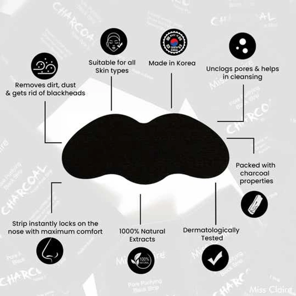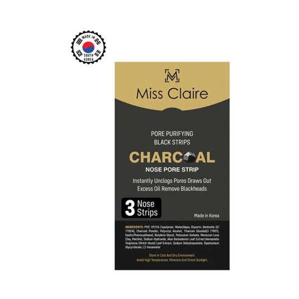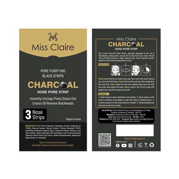Miss Claire Charcoal Nose Strip 1.2g | Deep Cleansing Blackhead Remover Strip | Activated Charcoal Pore Strip for Nose | Removes Dirt, Oil & Whiteheads | Smooth Clear Skin