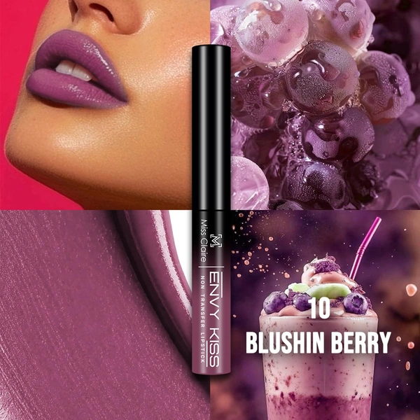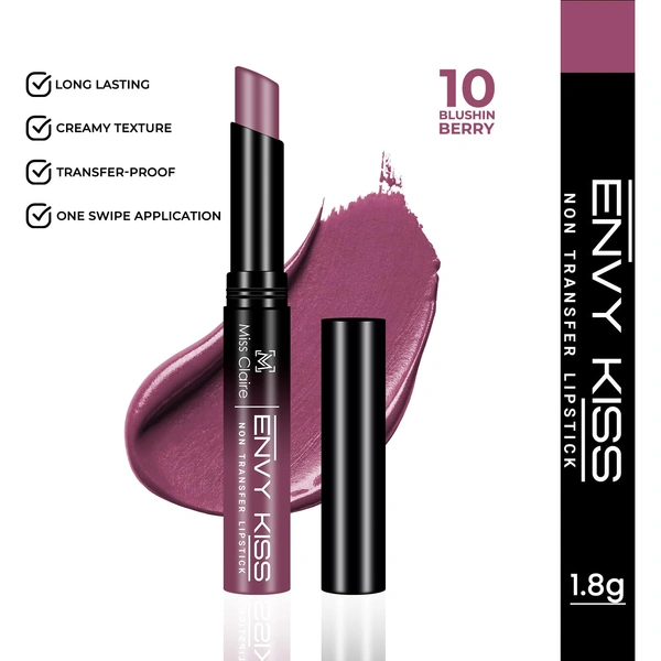 Miss Claire Envy Kiss Non Transfer Lipstick 10 Blushin Berry 1.8g | Ultra Matte Finish | Long Lasting Transfer Resistant Smudge Proof Lightweight Lip Color