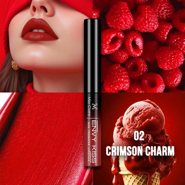 Miss Claire Envy Kiss Non Transfer Lipstick 02 Crimson Charm 1.8g |Intense Pigment | Transfer-Proof Matte Lipstick | Long Lasting Smudge Proof Transfer Resistant Lightweight Lip Color