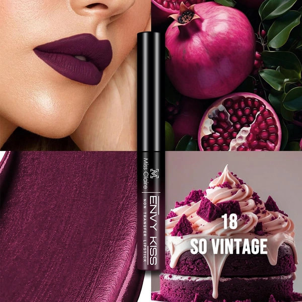 Miss Claire Envy Kiss Non Transfer Lipstick 18 So Vintage 1.8g | Rich Matte Finish | Long Lasting Smudge Proof Transfer Resistant Lightweight Lip Color