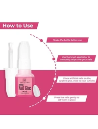 Clean and dry natural nails. Apply a small drop of glue. Place artificial nail and press firmly. Hold for a few seconds to secure.Reviews and Ratings