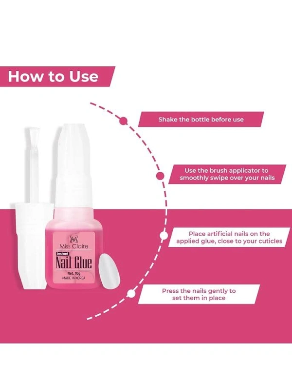 Miss Claire Nails Glue Clear 10g | Strong Adhesive Nail Glue for Artificial & False Nails | Quick Dry Nail Extension Glue | Long Lasting Hold | Nail Art & Press On Nails Glue