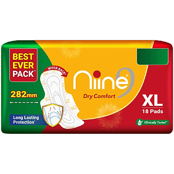 Niine Dry Comfort Ultra Thin XL Sanitary Pads (282mm) | Leak-Proof & Quick-Dry |Comfortable & Soft, Breathable | Anti-Frizz, 100% Skin-Friendly Protection