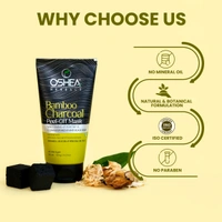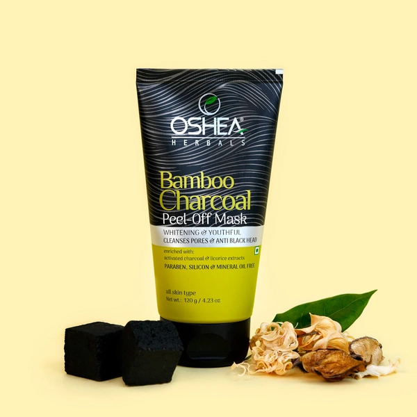 Oshea Herbals Bamboo Charcoal Peel-Off Mask (120g) deeply cleanses, unclogs pores, removes blackheads, and controls oil for a refreshed, radiant look. Enriched with activated charcoal, licorice extract for brightening, and chamomile for soothing, it detoxifies and nourishes the skin. Free from parabens and silicones, it's suitable for all skin types. Use 1-2 times a week for a clear, healthy glow.