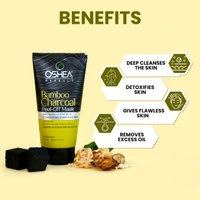 Oshea Herbals Bamboo Charcoal Peel-Off Mask (50g) deeply cleanses, unclogs pores, removes blackheads, and controls oil for a refreshed, radiant look. Enriched with activated charcoal, licorice extract for brightening, and chamomile for soothing, it detoxifies and nourishes the skin. Free from parabens and silicones, it's suitable for all skin types. Use 1-2 times a week for a clear, healthy glow.