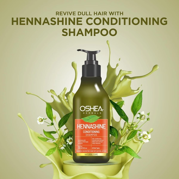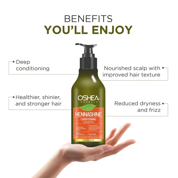 Oshea Herbals Heenashine Conditioning Shampoo 300ml | Deep Cleansing & Conditioning | Controls Dryness, Strengthens Hair | Enriched with Henna & Bhringraj Extracts