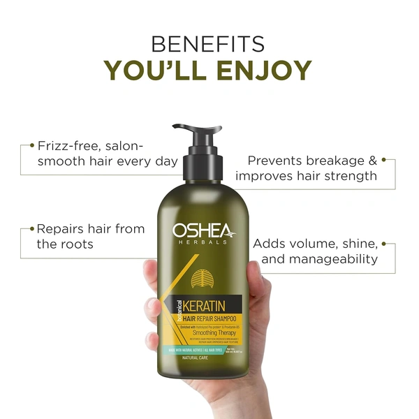 Oshea Herbals Keratin Hair Repair Shampoo 500ml | Strengthens & Repairs Damaged Hair | Smooth, Shiny & Frizz-Free | Deep Nourishment with Keratin Protein | For Men & Women