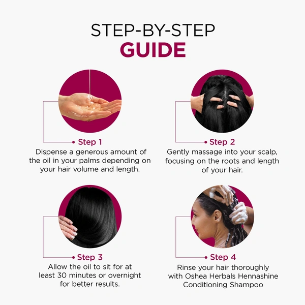 Apply oil to scalp and roots, part by part. Massage gently for a few minutes. Leave on for 30 minutes or overnight for deeper effect. Wash with mild shampoo; use regularlyReviews and Ratings