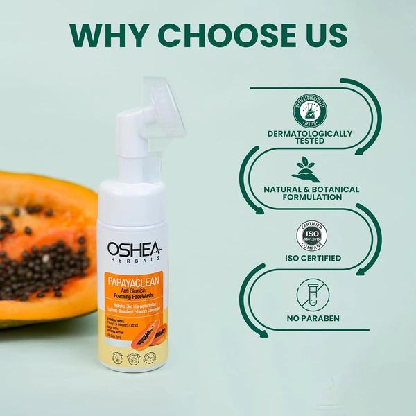 Oshea Herbals Papayaclean Anti Blemishes Foaming Face Wash 150gm | Enriched with Papaya Extract & Vitamin E | Lightens Blemishes & Hydrates Skin | Enhances Complexion & Helps in De-pigmentation