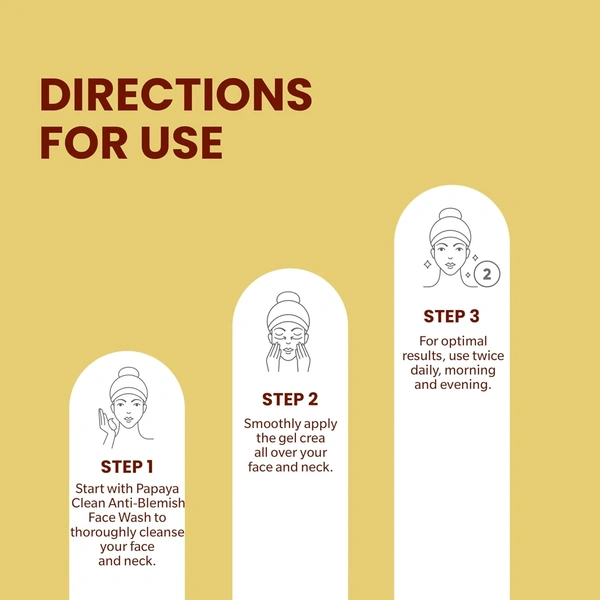 Take a small amount of gel cream. Gently apply it to the face and neck, massaging in circular motions. Focus on areas with blemishes, pigmentation, or acne marks. Use twice daily for best results.Reviews and Ratings