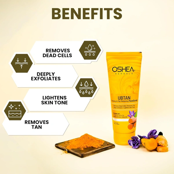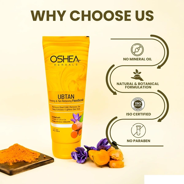 Oshea Herbals Ubtan Glowing & Tan Removing Face Scrub 100g | With Turmeric Extract & Herbal Formula | Exfoliates Dead Skin, Removes Tan, Repairs Sun Damage & Brightens Skin